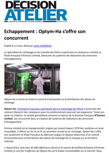 OPTYM HA : Leader Français spécialisé dans le traitement des filtres à particules